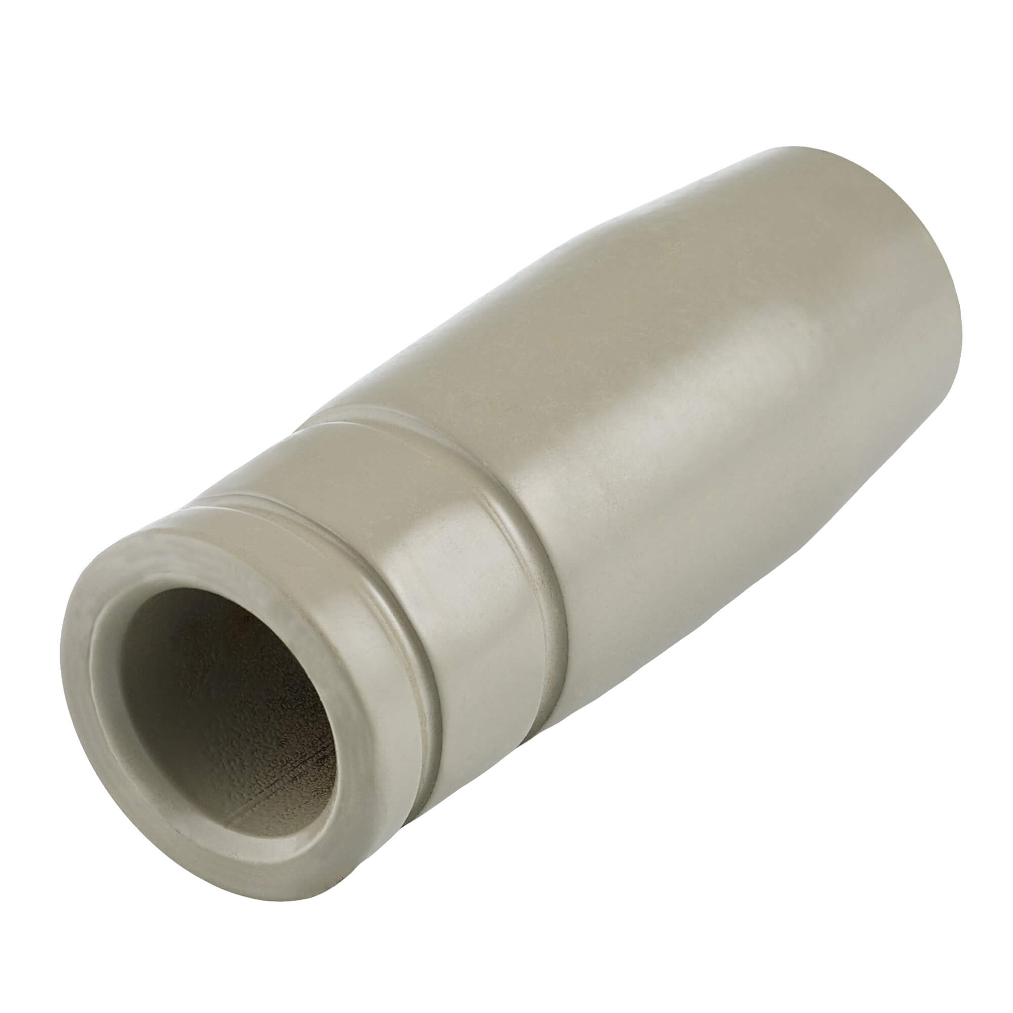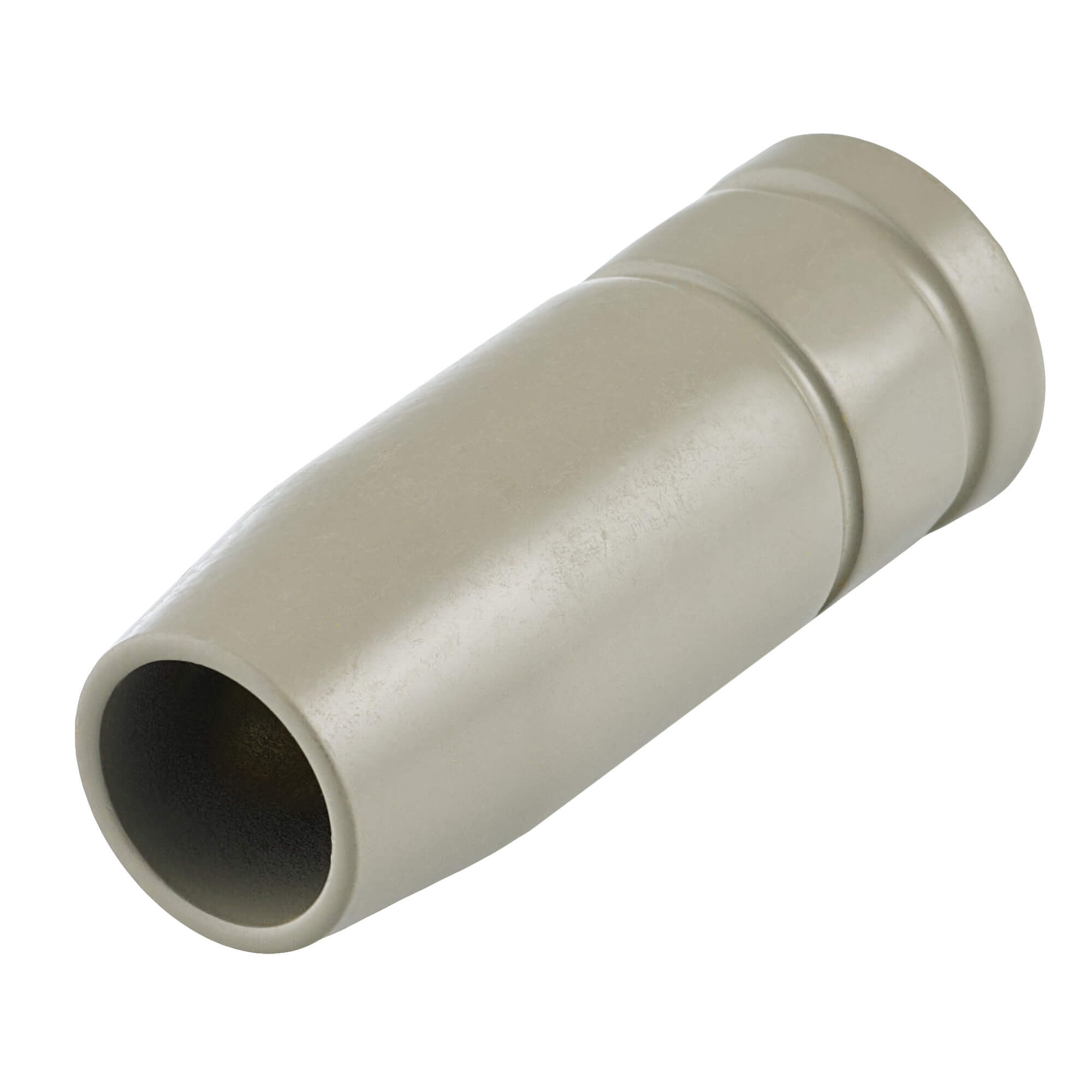 Газораспределительное сопло с керамическим покрытием для полуавтоматических горелок MIG MP 25 всех серий. Выходной внутренний диаметр сопла 15 мм. Сопло используется для равномерного распределения газового потока и для защиты сварочного наконечника от механического воздействия или случайного соприкосновения со свариваемым изделием.Сопло изготовлено из меди, сверху нанесён керамический слой, который работает как электрический и термический изолятор поверхности.Керамическое покрытие наносится специальным технологическим процессом, образуется гомогенный ровный слой, рассчитанный на промышленную эксплуатацию такого газораспределительного сопла. Керамический слой состоит из броннитрида (бор нитрид, BN).Отличительная особенность сопла CRM2515 – это керамическое покрытие:Керамическое покрытие создаёт термобарьер, так как керамика выдерживает очень высокие температуры, не расплавляется и не деформируется.Покрытие препятствует прилипанию сварочных брызг за счёт очень гладкой поверхности. Брызги либо отскакивают, либо слабо держатся и легко счищаются.Из-за отсутствия налипших брызг металла формируется более стабильный газовый поток и дуга. Увеличивается продолжительность работ без остановки и последующей очистки сопла и комплектующих для горелки MIG.Керамический слой заметно увеличивает ресурс сопла и расходных частей сварочной горелки.Область применения сопел с керамическим покрытием:Узкощелевое сваривание труб, толстых стенок. Орбитальная сварка, где сопло или наконечник может задеть стенку свариваемого изделия. В таком случае керамическое покрытие выступает в роли диэлектрика, защищает от коротких замыканий, снижает риск «поджигания» дуги по боковой стенке и медных включений в металл шва.Сварка порошковой проволокой, где нужно увеличить токи и скорость без потери качества корня.Автоматизированные линии и роботизация, где критичны длительные остановки рабочего процесса и присутствует минимальное обслуживание сварочных горелок.